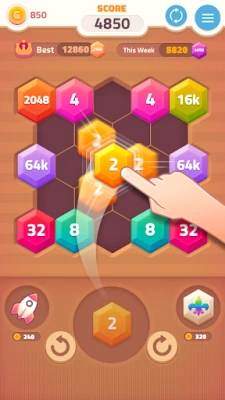 Hexa Merge: Drag and drop the numbers onto the wooden board and match 3 of a kind to double their value. A challenging game mode to sharpen your mind