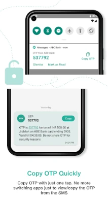 Copy OTP with just one tap. No more switching apps just to view/copy the OTP from the sms