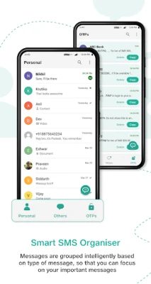 Smart SMS Organiser: Messages are grouped intelligently based on the type of message so that you can focus on your important messages