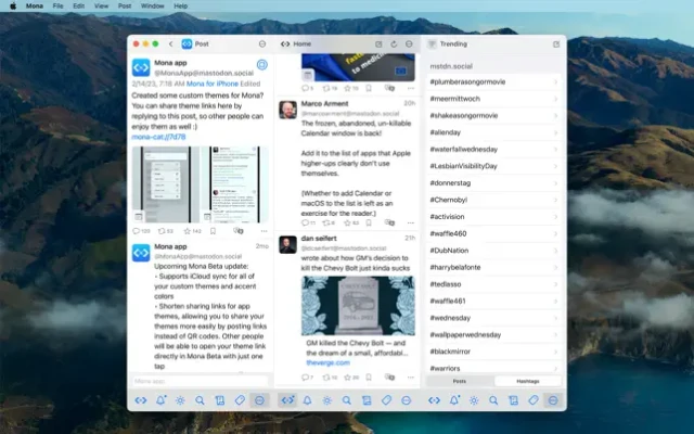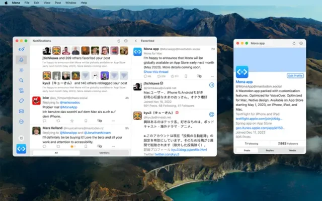 Mona is a Mastodon app packed with customization features. Optimized for VoiceOver. Native design.