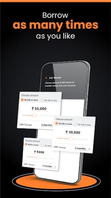● Borrow any amount or sum of money (starting at ₹3,000) from your approved Credit Line (up to ₹5 Lakh)