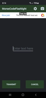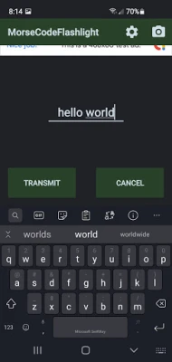 With this app you can send Morse code signals using your flashlight. Just type out your message and hit 'Transmit'.