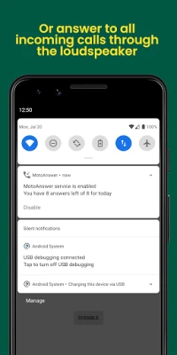 MotoAnswer can also be used by people with disabilities by connecting the smartphone to a bluetooth prosthesis or is also able to answer all incoming calls via speakerphone. The latter option is particularly useful for all those people who are unable to use their hands.