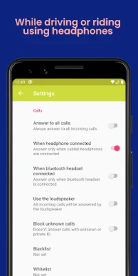 This feature can be extremely useful in the case of us bikers who travel with a intercom or a headset wired into the helmet and we can not (or do not want to) use the hand to respond. MotoAnswer can also help you when you are in-vehicle and you want all incoming calls answered by the loudspeaker or just when the headphones are connected.