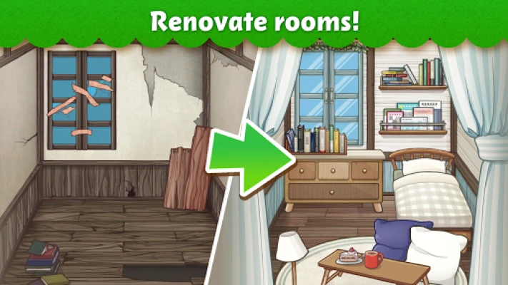 Play through a fun story filled with cute characters, creating stylish, unique rooms!