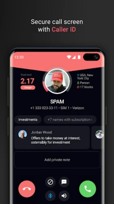 NumBuster app can act as your default phone call manager (you may change this option at any time in the app) that enhances your safety and security - you will see possible caller names and SPAM or robocaller warnings right on your screen before you answer the call.