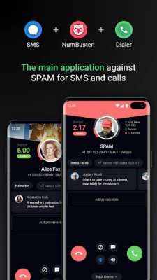 You also can use NumBuster app as a default SMS app in your smartphone (you may choose this option in SMS section of the app at any time) that sends and receives SMS and permanently protects you from SMS spam and fraud.
