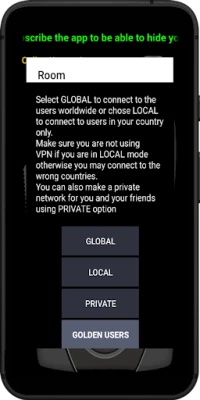 All Users can also define a 20 character key code using PRIVATE button and share with each other and make a private network that only the users who have this code can connect to each other.