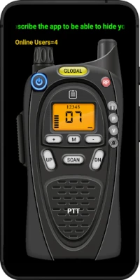 The app has public channels and users set on a same channel can talk with holding the PTT button.