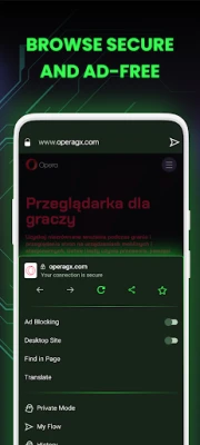 Opera GX brings the gaming lifestyle to your mobile. Express yourself with custom skins, discover free games and the best deals with GX Corner, share links easily between mobile and desktop with My Flow, and much more. All in a secure, private browser.