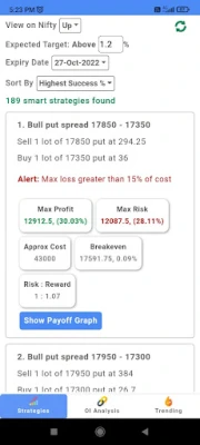 If a strategy is risky, the risk involved in it is also displayed. We recommend users to consider risky strategies only if they are confident with their view.