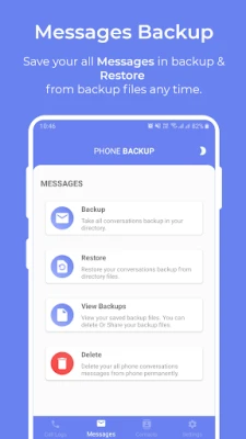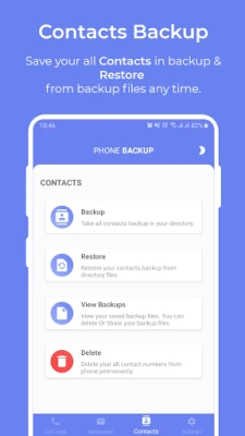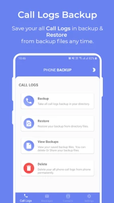 Phone Backup have some basics functionality to provide you complete services for Call Logs, Messages and Contact Backup & Restore.
