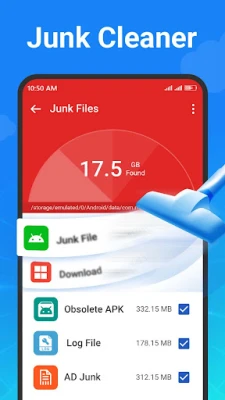 Phone Cleaner helps to find and delete all unwanted files on your phone. Effortlessly remove junk, residual, and obsolete APKs. Junk cleaner checks your phone storage and shows you all the junk and temporary files. You can choose which files to delete that take more storage.