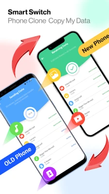 Smart transfer app can transfer to android your data to a new android phone in a very simple way with smart switch clone phone app. Copy my data app works on Wi-Fi & mobile cellular data both, so you can move to android your data from one phone to another. Attractive User Interface & colourful graphics are the main feature of this phone clone send anywhere app.