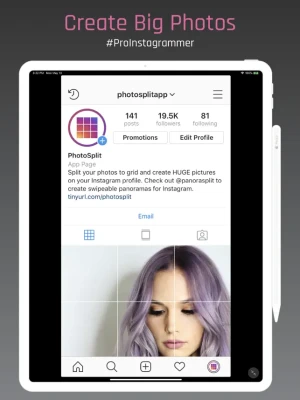 PhotoSplit lets you slice any photo into a 1x2, 1x3, 2x3, 3x3 & 4x3 grid while keeping it in high resolution. It then quickly lets you post the split images to Instagram to show it as one big photo on your profile. Elevate your Instagram game by giving your profile a professional look.