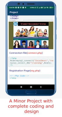 4.MINOR PROJECT: A sample minor project (STUDENT MANAGEMENT SYSTEM) is given in this application with full design ,screenshot and coding.