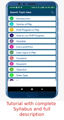 This is the only app in which you can learn the whole syllabus of PHP language with Tutorials ,programs and Interview questions and answers.