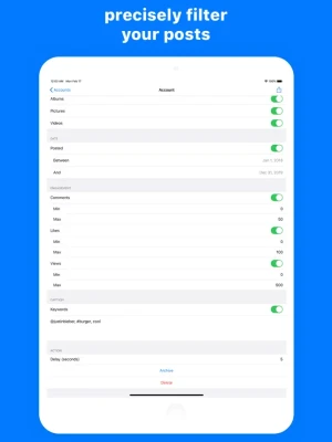 Because of Instagram’s public API limitation, we recommend not to archive or delete more than one post every 15 seconds, so make sure you set the appropriate delay in the settings.