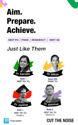 PrepLadder has a track record of producing NEET PG toppers like Dr. Aarushi Narwani, AIR-1, NEET PG '23, and Dr. Shagun Batra, AIR-1, NEET-PG ’22, every year. We’ve also seen several FMGE (July ‘23) toppers including Dr. Alikya Chipurupali, Score: 229, Dr. Dhaval Soni, Score: 226, Dr. Aditya Maruti, Score: 222, etc.