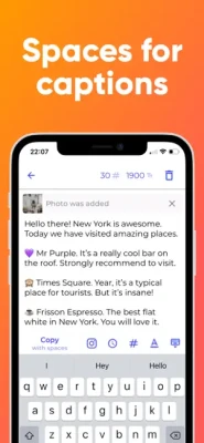 Spaces In some cases line-breaks in Instagram post captions are unpredictable. We fixed that. Just copy text from the app and paste it to the Instagram caption field. That's easy. All your paragraphs will look as you planned.