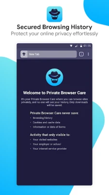 Private Browser Care is an amazing browser designed for Android Smart phones and Tablets that guarantees the user one thing he/she most desires and that is Privacy. Besides that, Private Browser Care is free to use, convenient and ensures fast surfing. Now you can finally browse on the internet without being tracked by anyone.