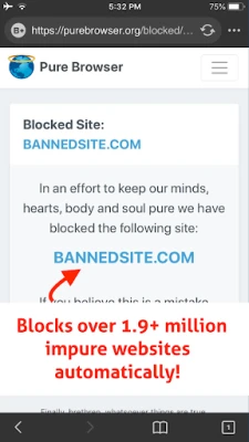 Pure Browser automatically filters out over 300 impure words and blocks over 1.9 million impure sites that may cause impure thoughts.