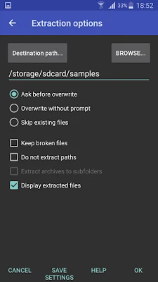 Additionally to standard ZIP files, unzip function supports ZIP and ZIPX with BZIP2, LZMA, PPMd and XZ compression also as password protected ZIP. Unrar command is available for all versions of RAR archives including the latest RAR5, password protected and multipart files.