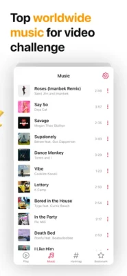 MUSIC Find and record videos with the world's most popular music. Stand out from other videos.