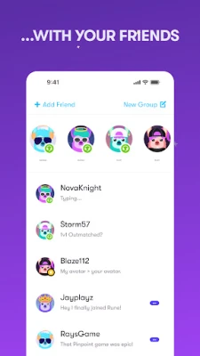 Want to hang out with your friends on voice chat while you climb the leaderboard? Or message the group chat and get the gang together? Call or message anyone on your Rune friend list in just one click.