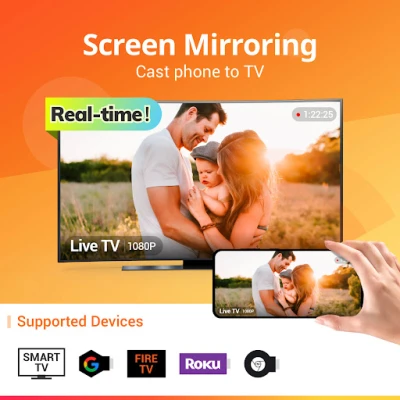 Screen Mirroring - All Mirror, helps you cast a small phone screen to big TV screen in high quality and real-time speed. You can easily access all types of media files, including mobile games, photos, music, videos & E-books on the big screen.