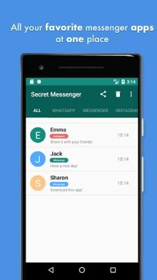 Secret messenger combine all your favorite messenger apps at one place.