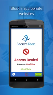 SecureTeen Parental Control App helps you to control screen time of your child so that he can get more time to engage in active play and be a healthier child.This app lets you to filter out all the cheesy and harmful content so your teens of impressionable age can enjoy all the good that web has to offer.