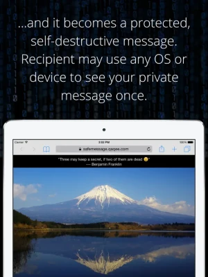 Send safe private messages that self-destruct after seen once. Use with WhatsApp, SMS, Message, Email, Skype, Messenger and others. Message recipient doesn't need to install anything to see your message.