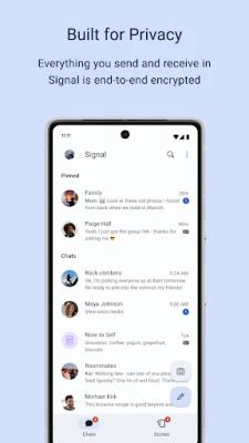 Signal is a messaging app with privacy at its core. It is free and easy to use, with strong end-to-end encryption that keeps your communication completely private.