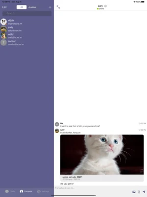 - Photos and other files easy sharing in private chats and in group chats, even with people using different XMPP clients.