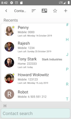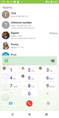 - dialer with fast T9 search