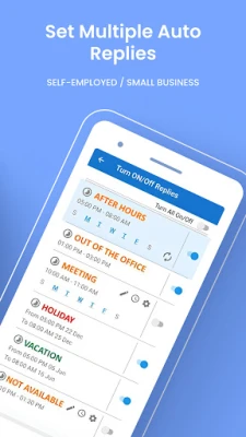 ✔ Option to set auto response by time, weekdays, repeat weekly