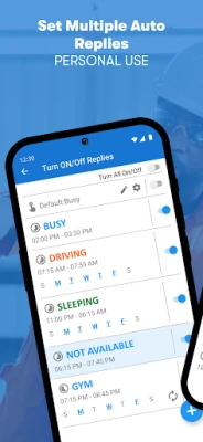 ✔ Setup multiple text auto replies for incoming SMS - SMS Autoresponder for driving, response for sleeping, auto reply texts for class
