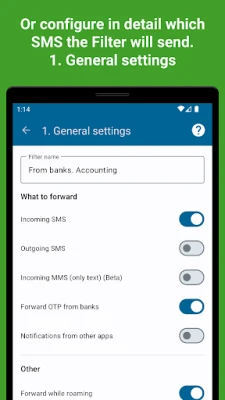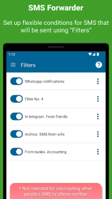 — Forward SMS from specific contacts/applications. You can configure from which of your contacts SMS will be forwarded or from which applications notifications will be redirected.