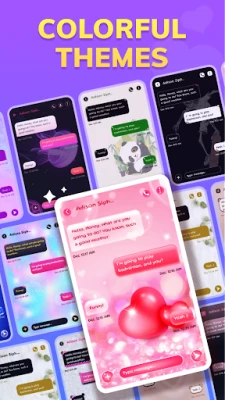 The app allows you to send FREE messages and SMS, as well as video and voice messages. You can customize your chat with different colorful themes, and even count the number of messages you sent or received. You can also schedule messages to send them at a later time.
