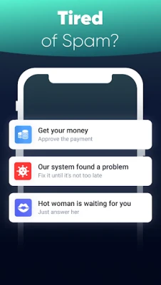 Our main goal is to set you free from plenty of fake and scam push notifications about getting large payments, finding viruses on your phone or hot girls who are waiting for you. Spam Shield monitors all your notifications, detects spam and then blocks it forever using our advanced system. We're here to help you if you feel a lack of control – just install our spam app and we'll do everything for your privacy, protection & calm!