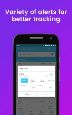 In short, this stock alert app is designed to help you catch every trade you wish to take throughout the day. You can use the app to track a wide range of stocks in real-time. Plus, you will be able to customize the notification types.