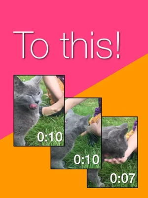 Change a stale, long video into a set of new, short videos! Or record a new video, and have it immediately ready for upload! Whether you're sharing on Instagram or Snapchat, StoryCutter will split your story into smaller chunks, perfect for uploading. The cuts can be seamless, or they can roll back a fraction of a second each time.