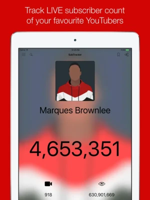 - Track your favorite YouTuber's live subscriber count - Add bookmarks to have YouTube channels easily accessible - Never again miss a huge milestone with widgets - Share the subscriber count with your friends - Easily find your channel with search menu - YouTube Search engine to automatically correct spelling - 3D Touch Quick Actions for immediate access - 3D Touch on saved bookmarks to see a quick preview of subscriber count - Minimal and beautiful design