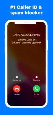 Sync.ME The world’s leading unknown caller ID and spam blocker. Control your privacy by blocking unwanted phone calls and know exactly who’s calling. Keep your phone safe with an automatically updated spam list and call identifier. • Identify unknown callers with world's #1 Caller ID app.• Call blocker identifies millions of spammers & robocalls.• See your callers photo.• Over 20 million people love Sync.ME!