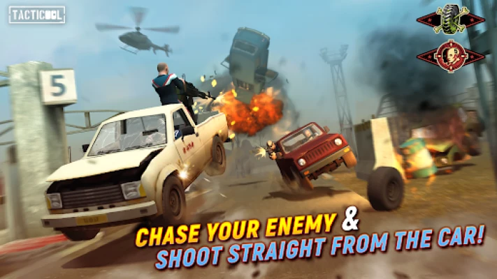 Tacticool is an action-packed top-down shooter. Shoot guns straight from the car, destroy all around you, lead a tactical war against zombies, shoot in PvP and PvE modes in the competitive shooting game! Enjoy free multiplayer battles and fast-paced car chases. Tacticool is a fun online multiplayer shooter, where strategy and tactics are the route to victory.