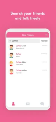 Find friends all over the world by searching 'a' through 'z' and even emoji