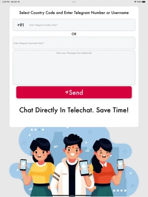 Send tele messages to any numbers or username with the Telechat app. This app helps you to open a Telegram™? App with any username without even saving it in your contact list. This app helps you in situation where you have to message some unknown person without saving their contact.
