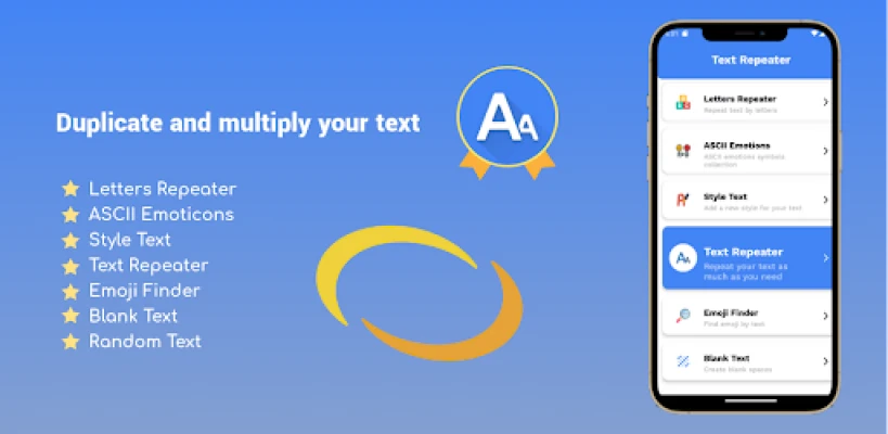 In addition, the application has other important and convenient functions such as Letters Repeater, Ascii Emoticons Emojis, Style Text, Emoji Finder, Blank Text, and Random Text Generator.