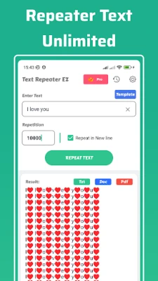 ⚡ Rapid Text Repeating: We understand that time is of the essence. Our app's lightning-fast text repeating function can duplicate your text in just 3 seconds, ensuring your efficiency and productivity.